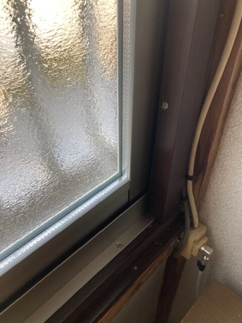 2枚建ての入隅側の柱に内窓枠取り付けスペースがないため、お客様と打ち合わせをし、