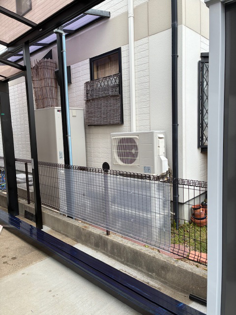 既存のスチールフェンスが劣化で柱が朽ちて倒れたため、ハイグリッドフェンス(w1600×H1000)に取り替えました。