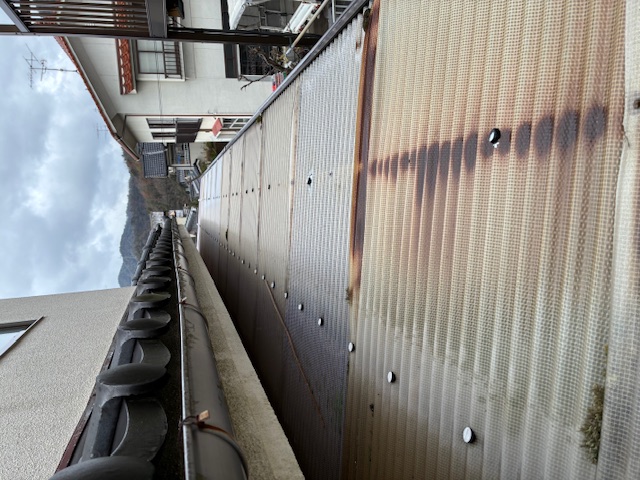 既存は昔のガラス繊維入りの波板でしたが、新規はポリカの波板です。