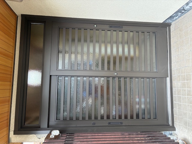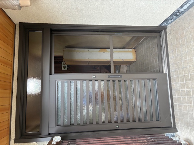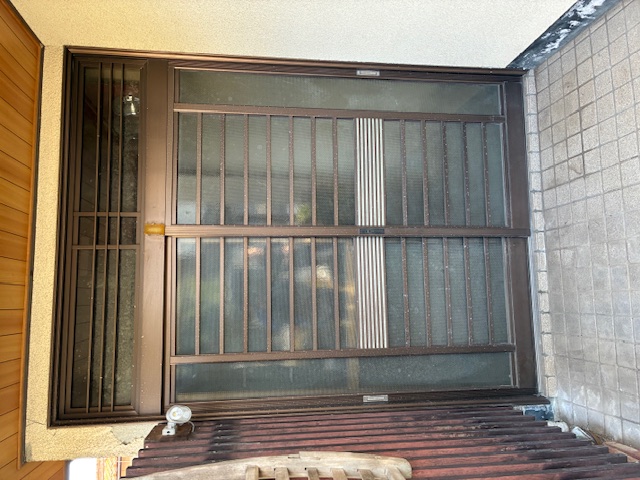 縁側木製建具を、アルミサッシ+防犯ガラスに取り替え。見えにくいですがランマ部もガラスを入れて二重に!
